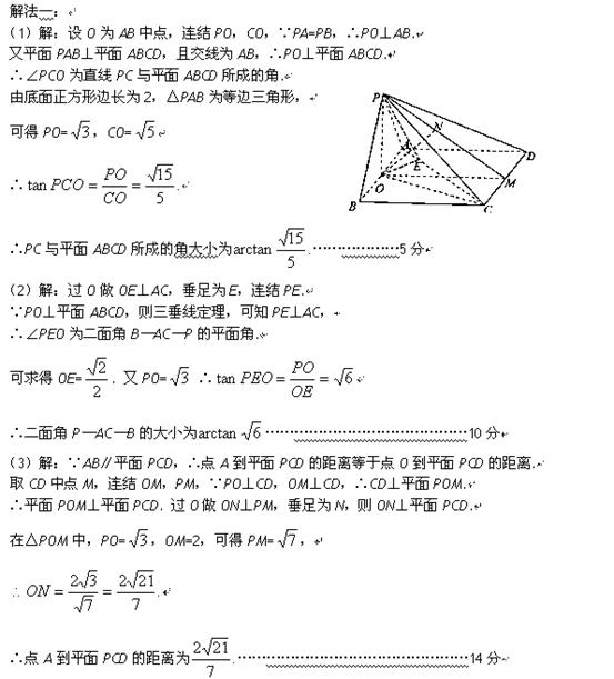 ∵△PBC是等边三角形,∴∠PCB=60°,即二面角P-DC-B的大小为60° ……8分