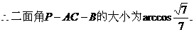 是平面ABC的一个法向量,设二面角B-AC-P的大小为