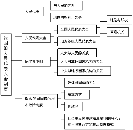 (2)基本内容:①国家的一切权力归人民;②人民在普选的基础上选举代表,组成各级人民代表大会作为国家权力机关;③由国家权力机关产生其他国家机关,依法行使各自的职权;④实行民主集中制的组织活动原则。