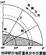(1).据图判断,太阳直射点的地理坐标是______,甲、乙、丙三地的月份与日期是___________.