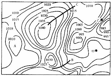 (3)图中B、C两处锋面中,实际存在的是__________锋面,说明判断的理由。