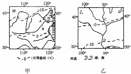 (2)同纬度地区比较,冬季更冷的是__________图区域,主要原因是_______________________________________________________________________________________________。(3分)