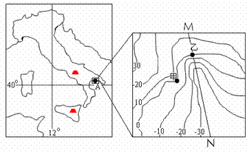 (2)上图中,右图是A港口附近等高线和等深线图。港口应建在甲、乙两处中的 处,说明判断理由(3分):