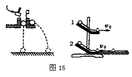 17. (3分)如图15所示的演示实验中,A、B两球同时落地,说明 。某同学设计了如图的实验:将两个质量相等的小钢球,从斜面的同一高度由静止同时释放,滑道2与光滑水平板吻接,则他将观察到的现象是 ,这说