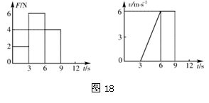 20.(10分)放在水平地面上的一物块,受到方向不变的水平推力F作用,力F的大小与时间t的关系、物块速度v与时间t的关系如图18所示。试根据图线求: