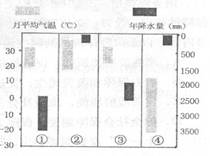 5.读①、②、③、④地月平均气温和年降水量资料统计图,关于四地气候的说法,正确的是