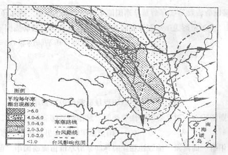(2)由图知我国华南地区受台风影响最为频繁,其中广东、海南最为严重。面临台风的到来我们可以采取什么样的对策? (6分)