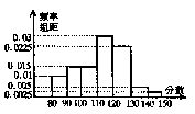 13、右图是某高三某班60名学生参加某次数学考试所得的成绩(成绩均为整数),整理后画出的频率分布直方图,则此班优良(120分以上为优良)率为 。