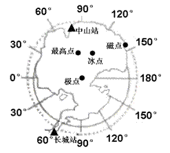 2008年10月20,我国第25次南极科考队从上海港出征。此次科考的任务之一是在南极的最高点(即冰穹A:78°E,80°S)建设我国第三个南极科考站--昆仑站。读图2,回答3-6题。