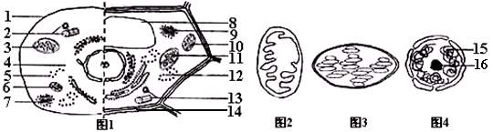 ⑴图中的结构1-16中不应该出现的是[ ]和[ ];可能含有色素的结构是[ ];结构16与[ ] 的形成有关。