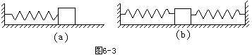 4.水平弹簧振子的弹簧应为如图6-3a或6-3b的样子。当振子的位置在平衡位置两侧时,弹簧长度是不同的。所以选项D不对。
