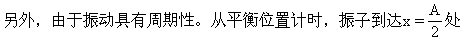 方法二:从图象为正弦曲线和数学知识可写出位移随时间的函数关系式,物理学上称为振动方程,从平衡位置开始,振子的振动方程为: