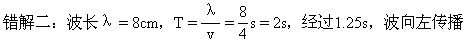 [错解原因] 错解一、错解二没有重视单位的一致性,在此题中波长从图中只能得出λ=8cm,而波速给出的却是国际单位4m/s。因此,求周期时,应先将波长的单位统一到国际单位制上来。