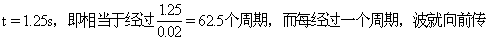 播一个波长。经过62.5个周期,波向前传播了62.5个波长。据波的周期性,当经过振动周期的整数倍时,波只是向前传播了整数倍个波长,而
