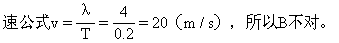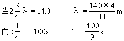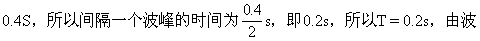 (2)实际上“相继出现两个波峰”应理解为,出现第一波峰与出现第二个波峰之间的时间间隔。因为在一个周期内,质点完成一次全振动,而一次全振动应表现为“相继出现两个波峰”,即T=0.4s。则v=