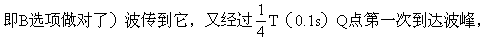 错解二:质点Q(x=9m),经过0.4s(此处用了正确的周期结果
