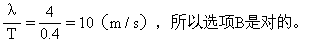 波长λ有一系列数据,周期T也有一系列数据,从波的概念出发,两者并无一一对应,因而波速应为