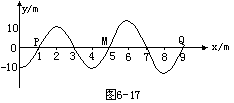 传到P点,所以画出如图6-8所示的波形图。因为波源在原点,波沿x轴正方向传播,所以可判定,P点开始振动的方向是沿y轴正方向(即向上)。