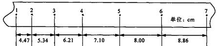 做匀变速直线运动的小车带动纸带通过打点计时器,打出的部分计数点如图所示。每相邻两点间还有四点未画出来,打点计时器使用的是50Hz的低压交流电,求打点计时器打“2”时,小车的速度v2=