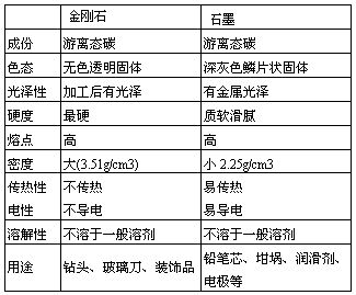 [讲解] 金刚石和石墨物理性质上的差异决定了用途上的差异。