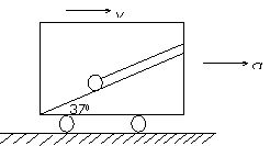 (20分)如右图所示,一固定在车厢内的倾角为37°的光滑斜面上,由平行于斜面的不可伸长的细绳系住一质量