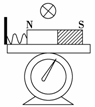 10.(2009·项城模拟)如图所示,台秤上放一光滑平板,其左边固定一挡板,一轻质弹簧将挡板和一条形磁铁连接起来,此时台秤读数为N1,现在磁铁上方中心偏左位置固定一通电导线,电流方向如图,当加上电流后,台秤读数为N2,则以下说法正确的