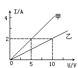 15.如图所示,甲、乙分别是两个电阻的I-U图线,甲电阻阻值为______Ω,乙电阻阻值为______Ω,电压为10V时,甲中电流为______A,乙中电流为______A。