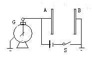 12.如图所示,A、B为平行板电容器的金属板,G为静电计,开始时电键S闭合,静电计指针张开一定角度。为了使指针张开角度增大些,应该采取的措施是