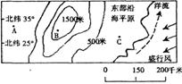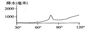 读图11“30°N纬线上部分地区的降水分布”,回答21-22题。