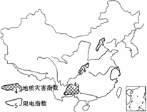 图10为中央气象台发布的某日我国地质灾害指数和限电指数分布示意图。读图回答19-20题。
