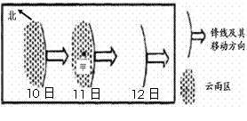 锋线指锋面与地面的交线,图12为“2月10-12日某地区锋线移动情况”,请回答23-25题。