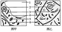 C.甲乙两图中具有双层膜结构的细胞器是2、4、5; 标号6的主要成分是纤维素