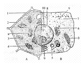 42.(8分)下图中A、B分别表示高等植物和动物细胞的亚显微结构,请据图回答: