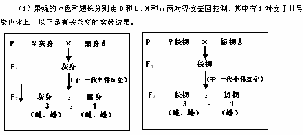 ①根据实验结果分析,属于显性性状的是 ,其中控制 (翅长、体色)的基因位于第Ⅱ号染色体上,体色和翅长两对性状的遗传符合 定律。