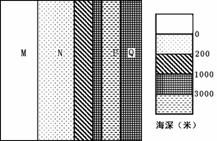 右图是“海底地形分布示意图”。读图回答21-22题。