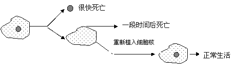 17.将活的变形虫的细胞核取出,单独的细胞核很快死亡,无核部分能短期存活,但随之也死亡如果将去核的变形虫重新移植入细胞核后,变形虫又能恢复生命活动,如下图所示请据图回答问题:
