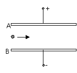 如图、质量为m,电量为q的带电粒子以初速v0从两平行金属板左侧中央平行于极板飞入匀强电场,两平行金属板两端的电压为U,两板的距离为d, 长度为L,并能从另一端射出,(不计重力)。