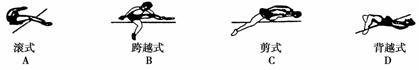 解析:四种过杆姿势中,前三种过杆时,重心均在杆之上,而背越式过杆时,头、躯干、腿依次过杆,身体的大部分与杆接近甚至低于杆,所以选D.