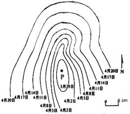 右图为某平原地区土壤表层解冻起始日期的等值线图。完成5-6题。