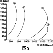 图3显示中国不同地区山地年降水量从山麓到山顶的变化。