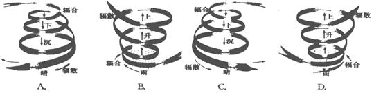 10.2006年第一号台风“珍珠”于5月18日凌晨在我国广东沿海登陆。以下能反映该台风气流运动特征的示意图是 ( )