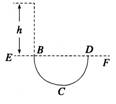 1.如图所示,虚线EF的下方存在着正交的匀强电场和匀强磁场,电场强度为E,磁感应强度为B.一带电微粒自离EF为h的高处由静止下落,从B点进入场区,做了一段匀速圆周运动,从D点射出.下列说法正确的是 ( )