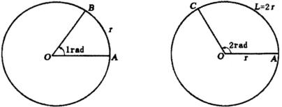 我们把等于半径长的圆弧所对的圆心角叫做1弧度的角,如图1,弧