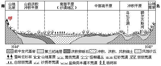 下图为我国某盆地自然景观剖面图,读图回答4-6题: