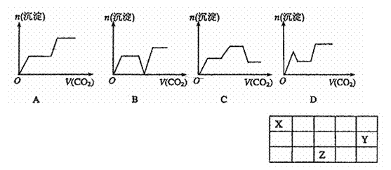 12.将足量的CO2不断通入KOH、Ba(OH)2、KalO2的混合溶液中,生成 沉淀的物质的量与通入CO2的体积关系可表示为(已知AlO-2+HCO-3+H2O=Al(OH)3↓+CO2-3) ( )