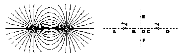 7、用电场线能很直观.很方便地比较电场中各点的强弱。如图,左边是等量异种点电荷形成电场的的电场线,右边是场中的一些点:O是电荷连线的中点,E、F是连线中垂线上相对O对称的两点,B、C和A、D也相对O对称,则 ( )