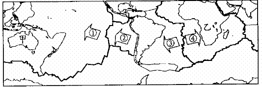 板块构造学说认为,地球岩石圈并不是完整的一整块,而是分为六大板块,这些板块处于相对的运动状态。读全球六大板块(局部)分布示意图,回答27-28题。