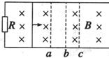 5.如图所示,水平光滑的平行金属导轨,左端与电阻R相连接,匀强磁场B竖直向下分布在导轨所在的空间内,质量一定的金属棒在垂直导轨的方向上搁在导轨上.今使棒以一定的初速度向右运动,到位置c时棒刚好静止.设导轨与棒的电阻均不计,ab与bc的间距相等,