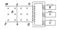 [例4](如图所示,MN和PQ为处于同一水平面内的两根平行的光滑金属导轨,导轨的电阻不计.垂直导轨放置一根电阻不变的金属棒ab,金属棒与导轨接触良好.N、Q端接理想变压器的原线圈,理想变压器的输出端有三组副线圈,分别接电阻元件R、电感元件L(电阻不为零)和电容元件C.在水平金属导轨之间加竖直向下的磁感应强度随时间均匀增加的匀强磁场,若用IR、IL、IC分别表示通过R、L和C的电流,则下列判断正确的是( )