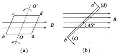 如图(a)所示,一矩形线圈abcd放置在匀强磁场中并绕过ab、cd中点的轴OO'以角速度